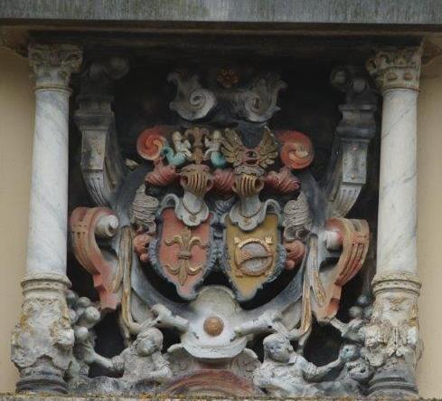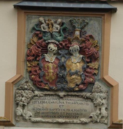 1697 | Das heute noch bestehende Wappen trägt die Inschrift "Das von den Vätern ererbte Haus hat Theodor Ludwig von Korff, Schatzmeister der Osnabrücker Karlskirche und Probst zu St. Johannes dem Täufer für sich, seine Gastfreunde und Nachkommen neu aufgebaut". |